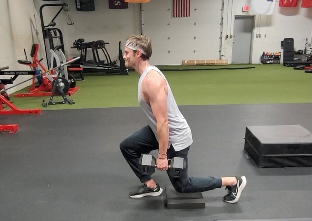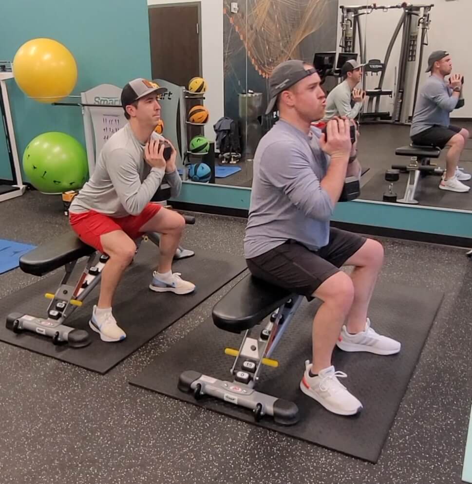 Box Squat is a great lower body compound exercise because it allows us to focus the concentric movement of the Squat (standing up) with no momentum generated from the eccentric phase (sitting down). This results in more use of the trunk, glutes, and hamstrings to stand back up from the seated position